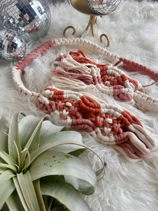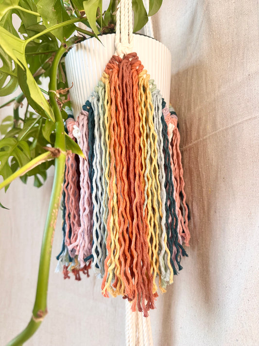 Rainbow Macrame Wall Hanging with Quartz and Airplant