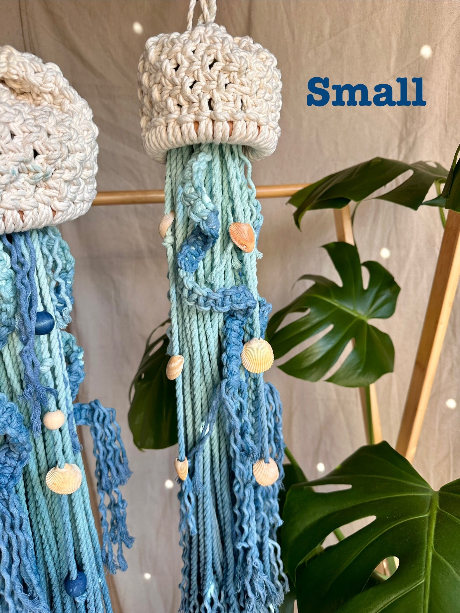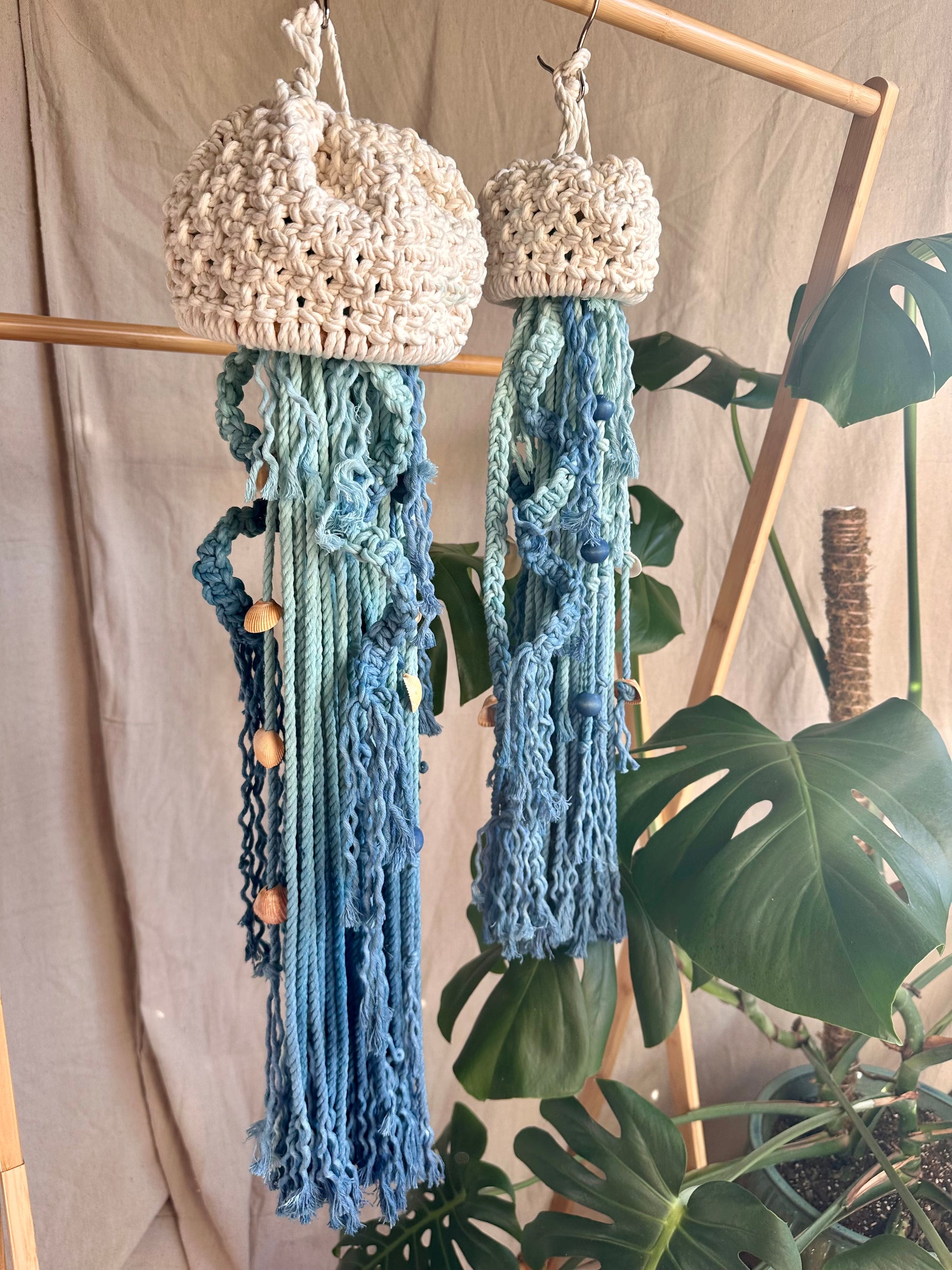 Esta medusa de macramé teñida a mano es el complemento perfecto para cualquier hogar bohemio o playero. Cada pieza es completamente personalizada y teñida a mano, con tentáculos y cuentas en espiral, lo que hace que estas caprichosas gelatinas sean únicas para ti. Esta hermosa Jelly colgante añade un toque de encanto costero a tu espacio.