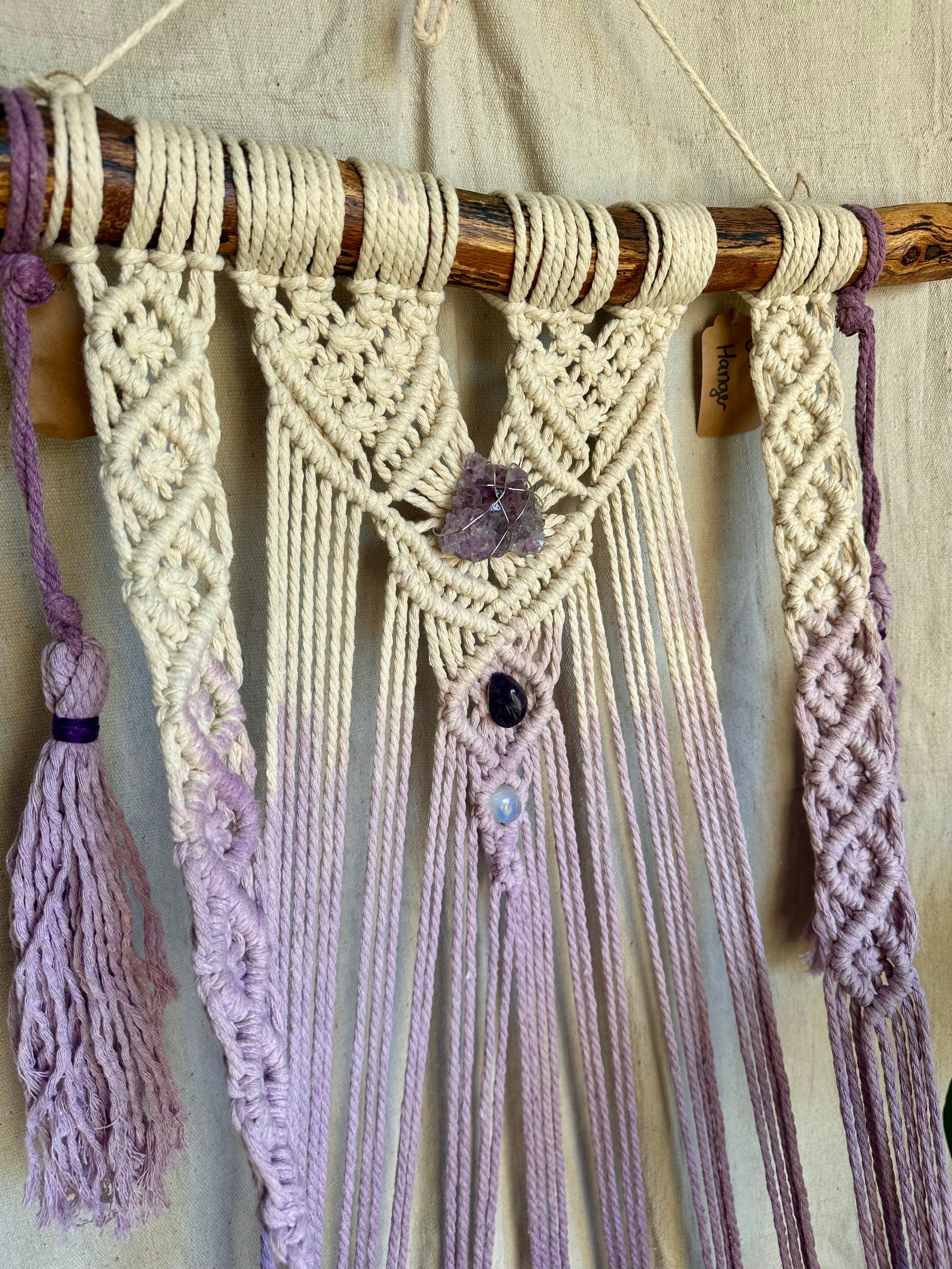 Construit avec un cordon en macramé 100 % coton naturel, ce hamac pour chat est doté d'une branche en bois naturel robuste et de pompons décoratifs, offrant un espace sûr, confortable et enrichissant pour votre animal de compagnie bien-aimé. Choisissez parmi une variété d'options de couleurs, y compris un dégradé teint à la main ou un cordon uni pré-teint, comme le montrent les images. Ornez-le de cristaux et de perles pour vraiment vous l'approprier. Avec des options de personnalisation infinies, votre style unique et celui de votre animal transparaîtront dans votre chef-d'œuvre en macramé.